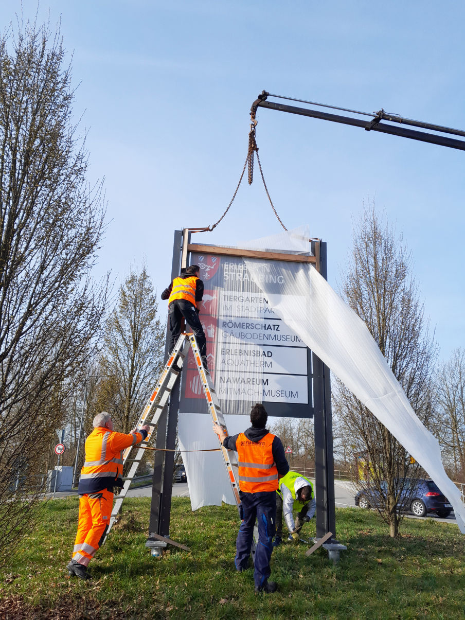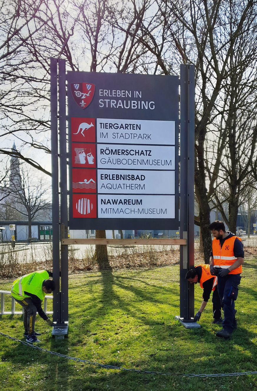 Die Stadt Straubing wollte das bestehende touristische Leit- und Informationssystem, das 2010 von TEAMGEISSERT realisiert wurde, um Werbetafeln ergänzen, auf denen vier städtische Einrichtungen vorgestellt werden,