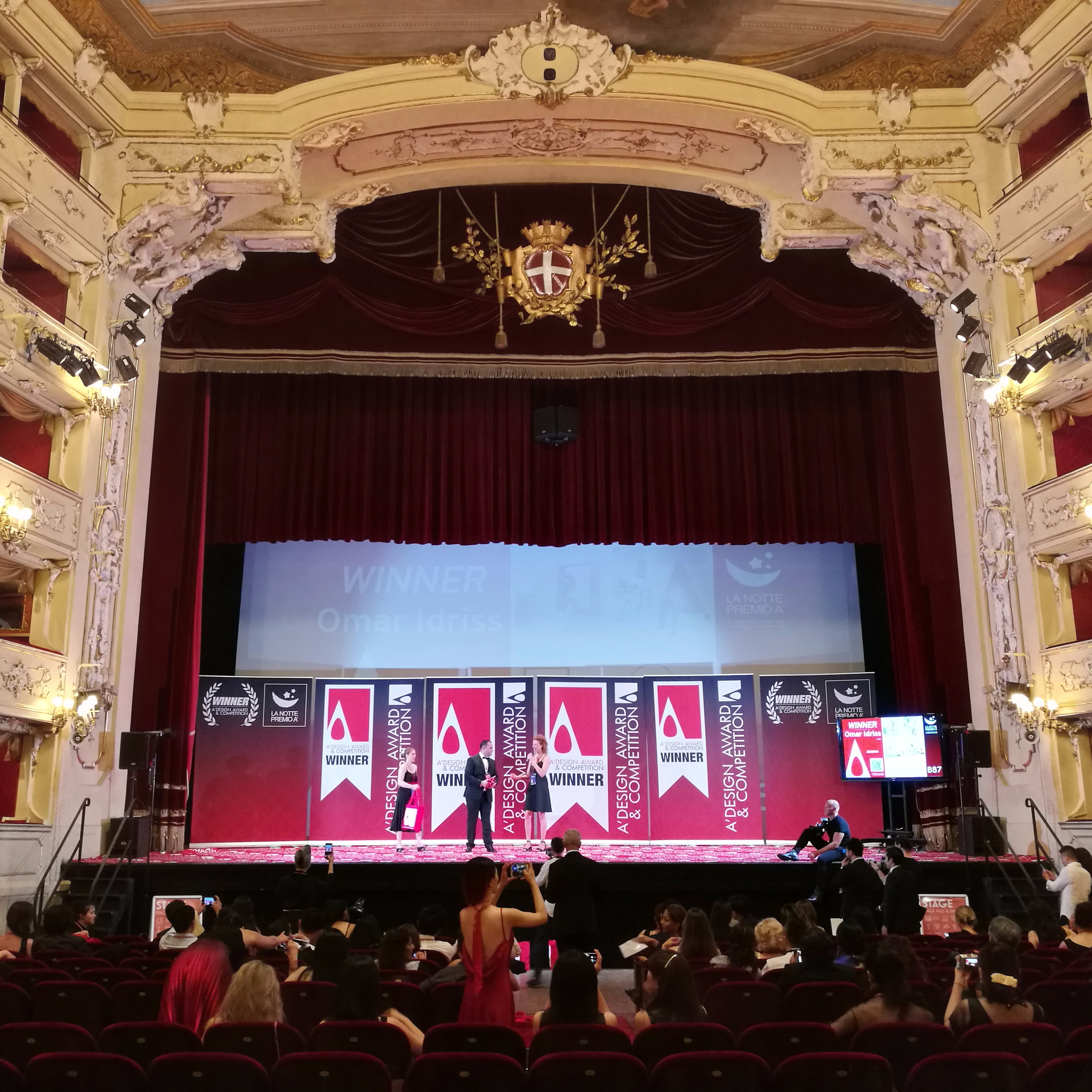Die Gala-Night ist eine ganz besondere Abendveranstaltung, bei der die Gewinner des Wettbewerbs zusammenkommen, um die Ergebnisse des Wettbewerbs zu feiern. Die Veranstaltung zielt darauf ab, Networking-Möglichkeiten und Medienberichterstattung für die Gewinner zu schaffen. Als Veranstaltungsort wurde das Teatro Sociale (Architekt Giuseppe Cusi) am Comer See gewählt. Die A' Design Award Gala-Night ist eine Veranstaltung mit Abendgarderobe und rotem Teppich, an der hochkarätige Gäste aus aller Welt teilnehmen, die das Beste vom Besten aller Designbranchen repräsentieren.