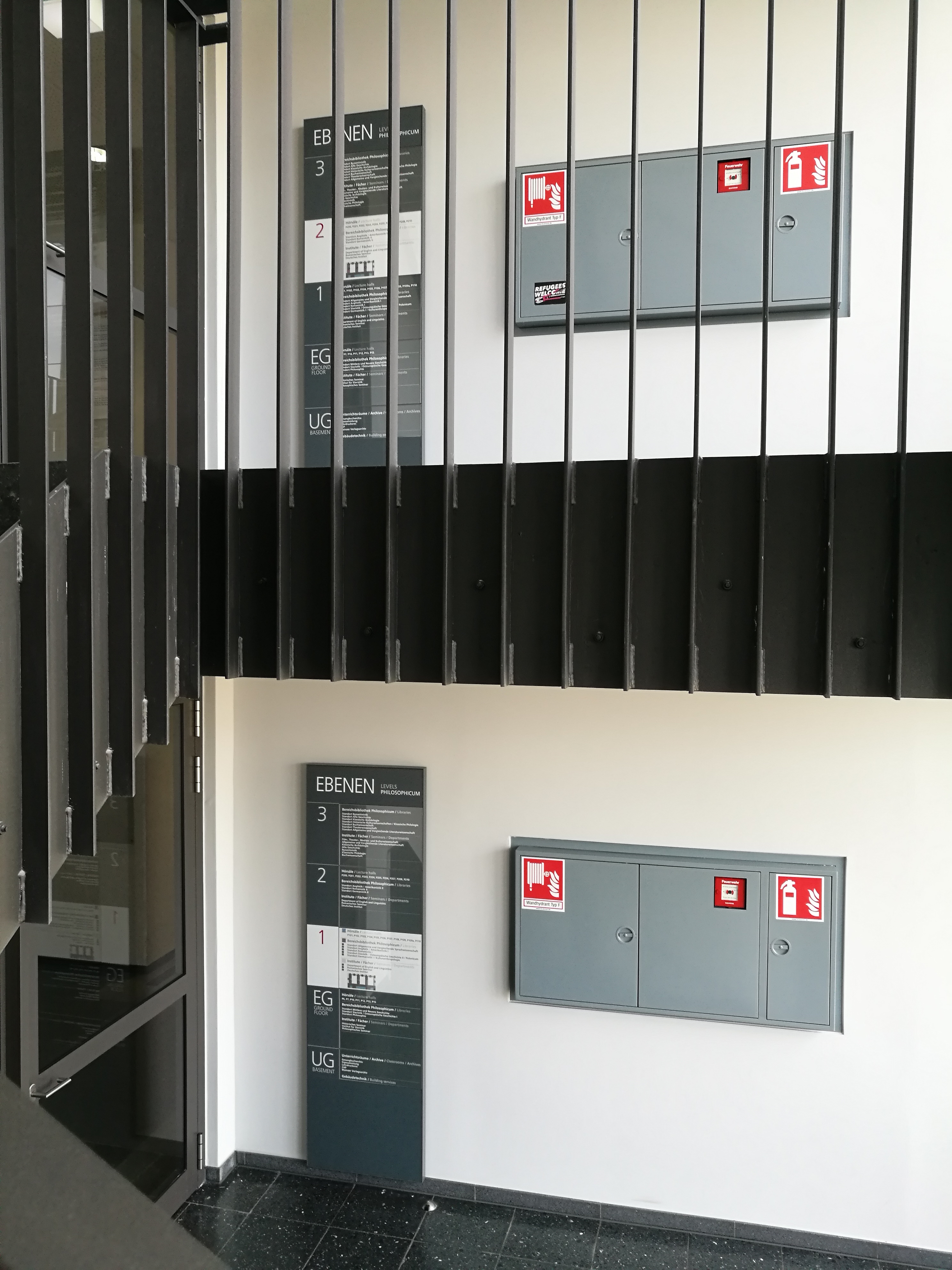 In Zusammenarbeit mit Moser.Design haben wir das Leit- und Orientierungssystem für das Philosophicum I in der Johannes Gutenberg Universität in Mainz realisert. Großformatige Übersichtspläne und Etagenübersichten erleichtern die Orientierung im Gebäude.